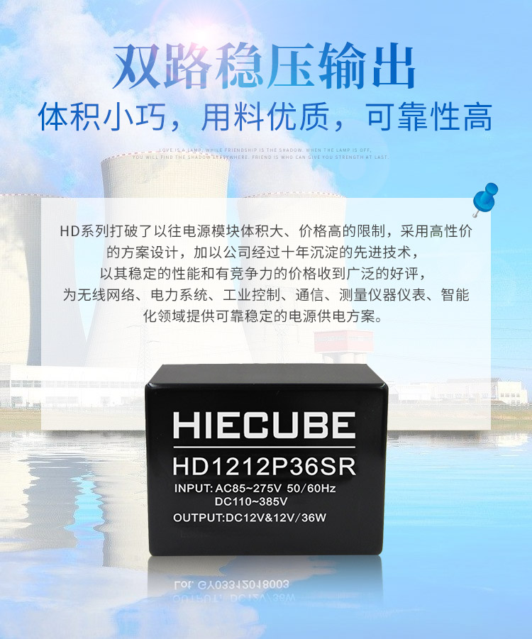 品牌:HIECUBE 型號:HD1212P36SR 隔離耐壓:3000VAC 輸出電壓精度:±1% 電源類別:工業級ACDC電源模塊 模塊質保年限:3年